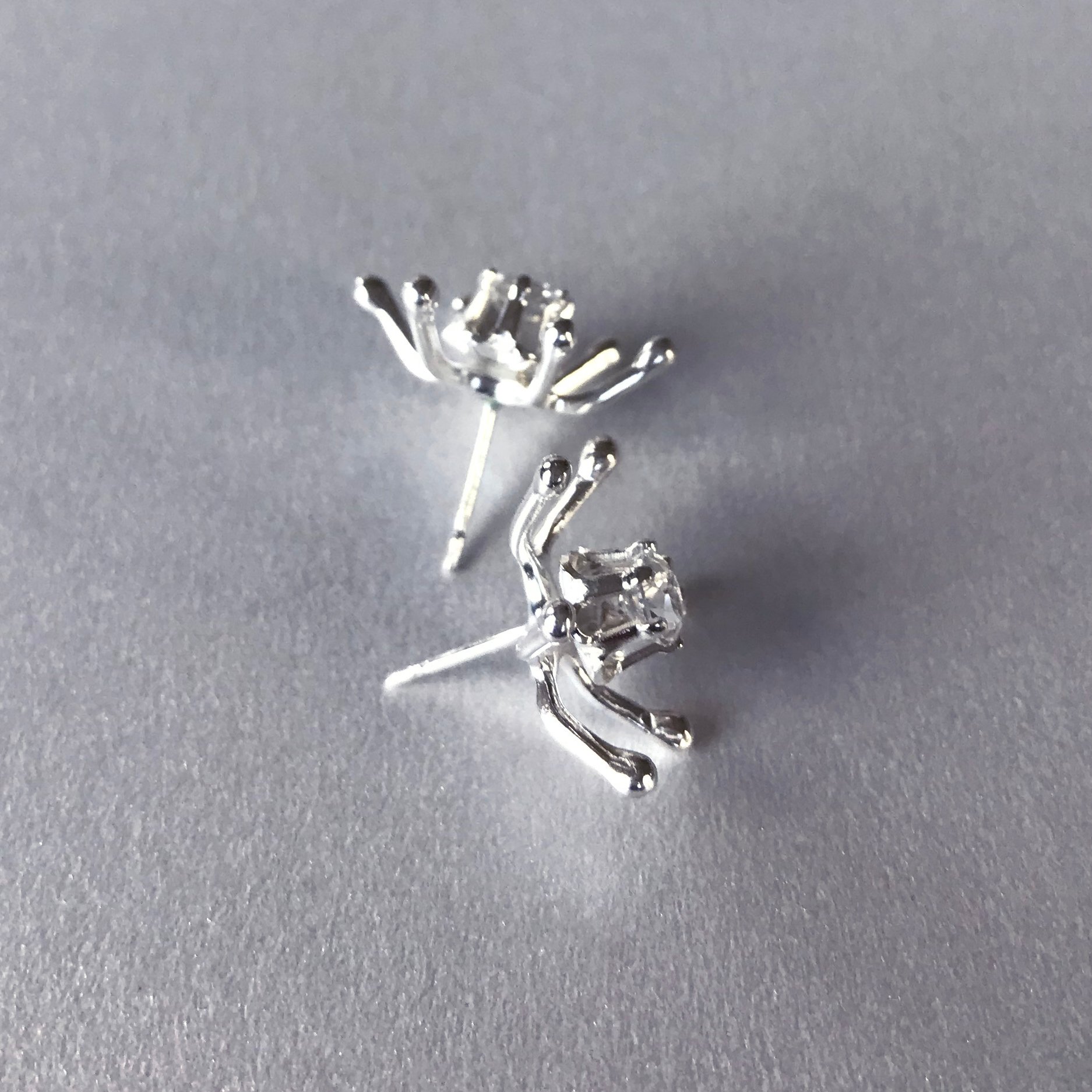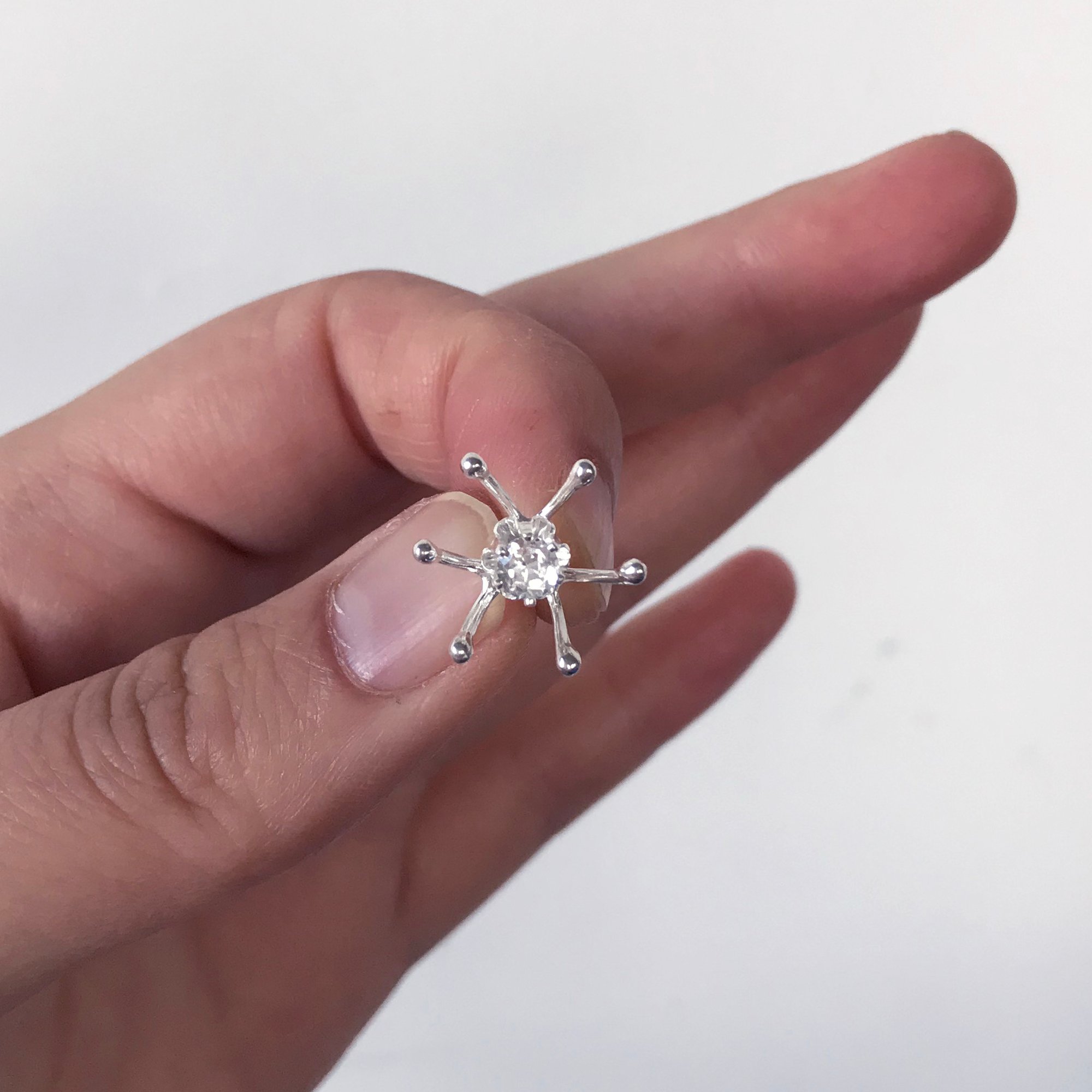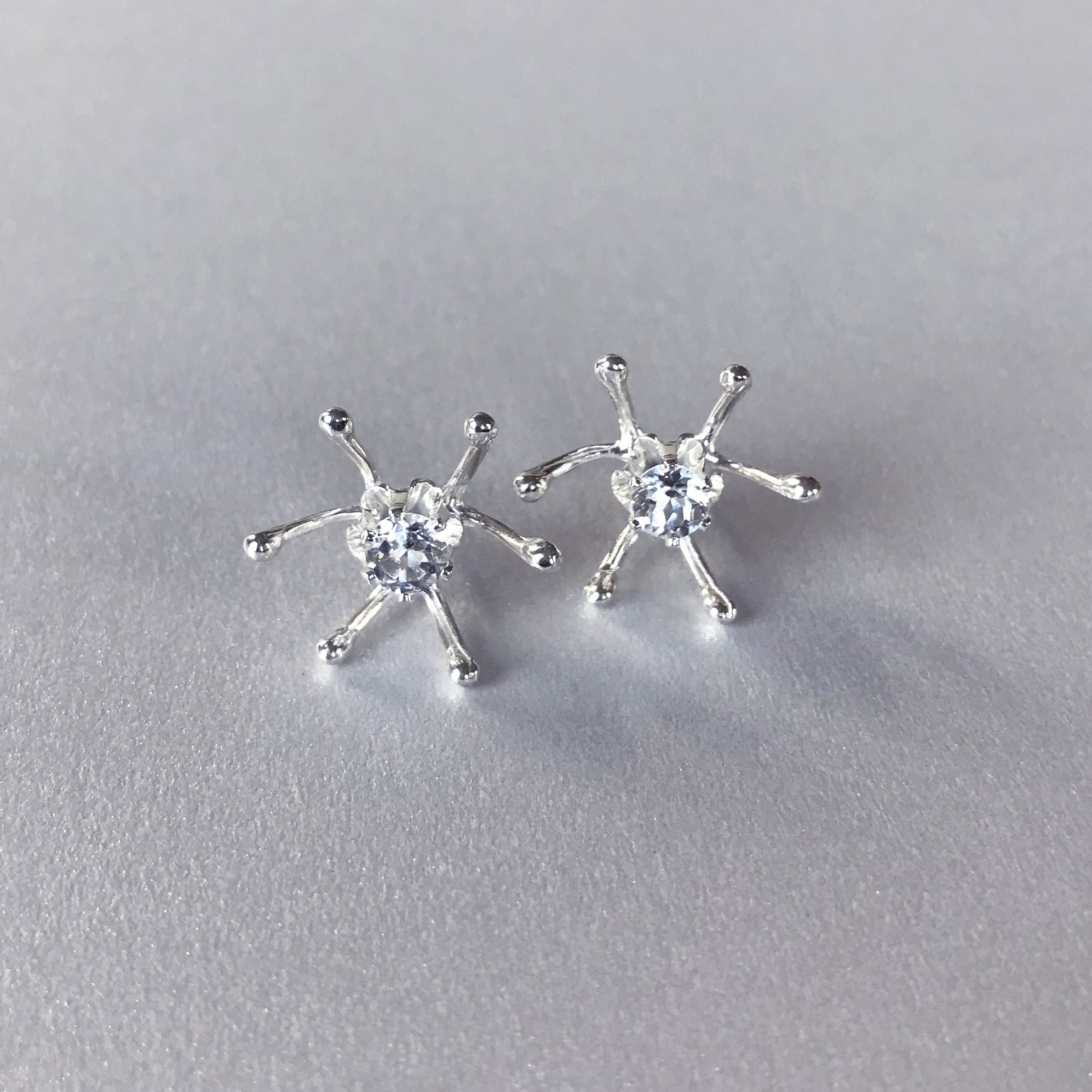 Sterling silver starburst studs set with sparkling natural white topaz gems.