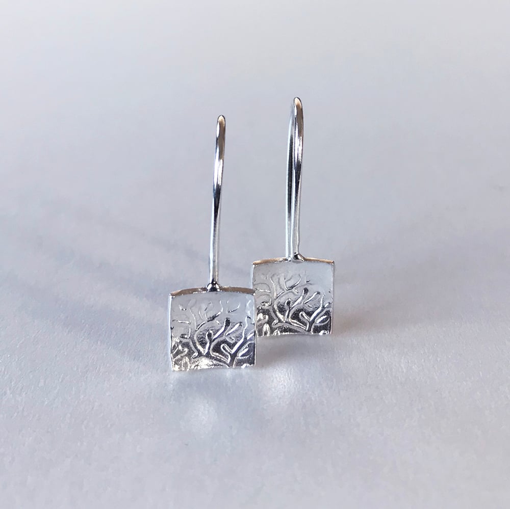 Petite earrings with a delicate pattern of branching corals, slightly cupped to catch and reflect the light.