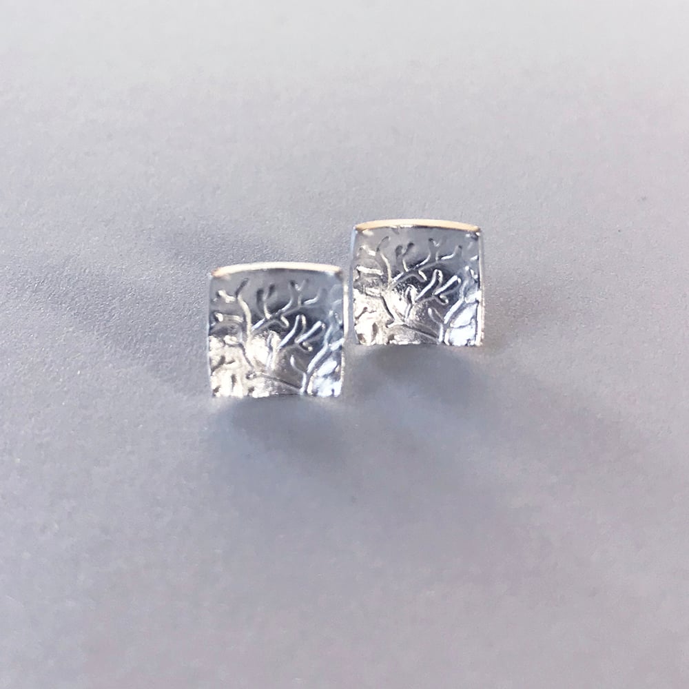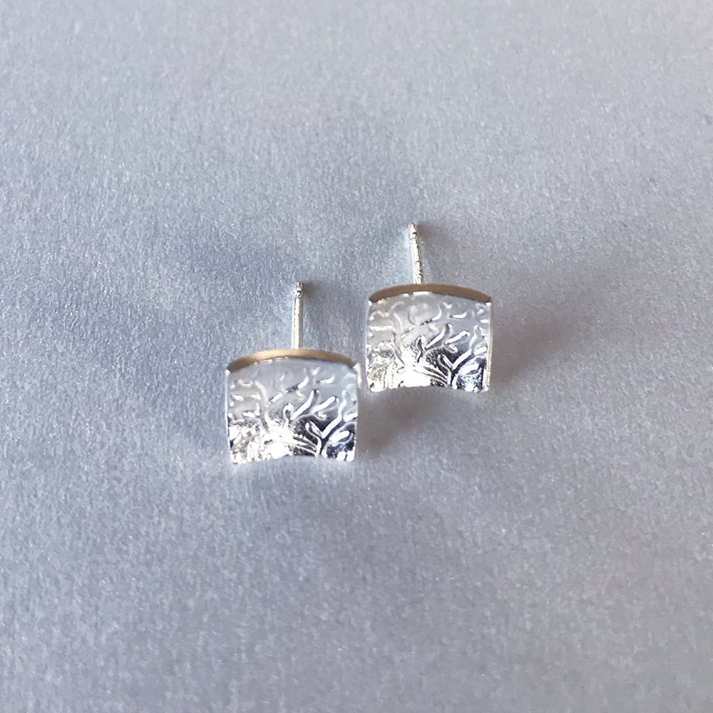 Petite earrings with a delicate pattern of branching corals, slightly cupped to catch and reflect the light.